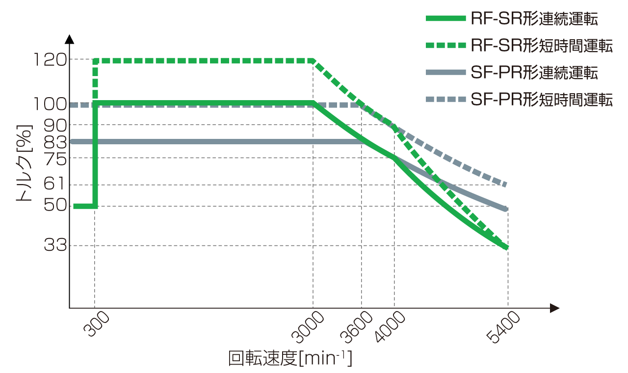 300-3600min -1 ではSF-PR形より高いトルクで運転が可能です。