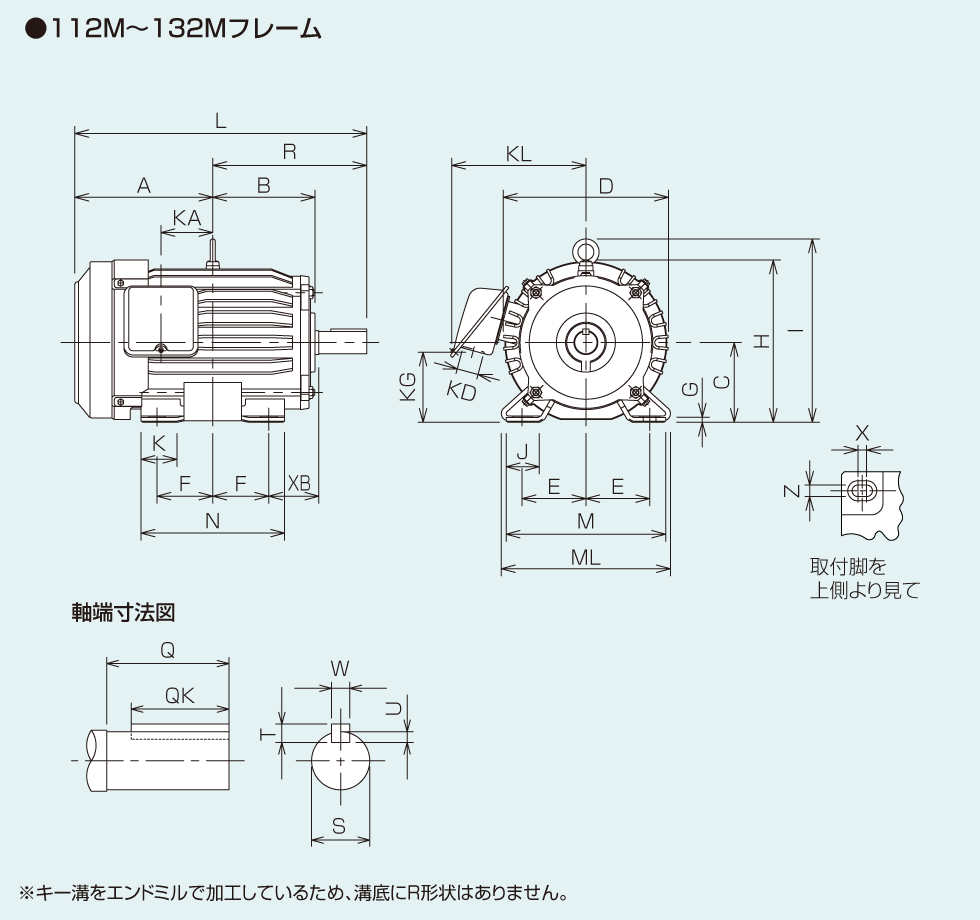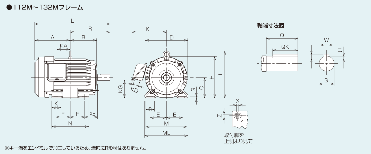 | ML | N | X | XB | Z | Q | QK | R | S | T | U | W | 負荷側 | 反負荷側 | |||
