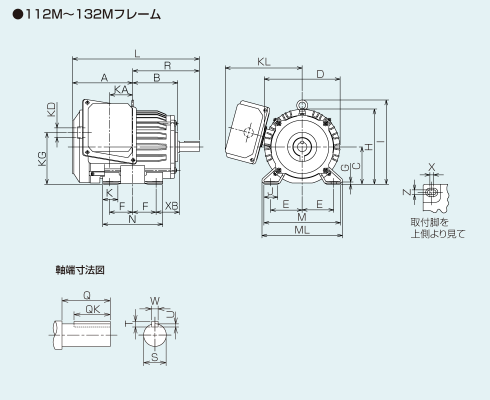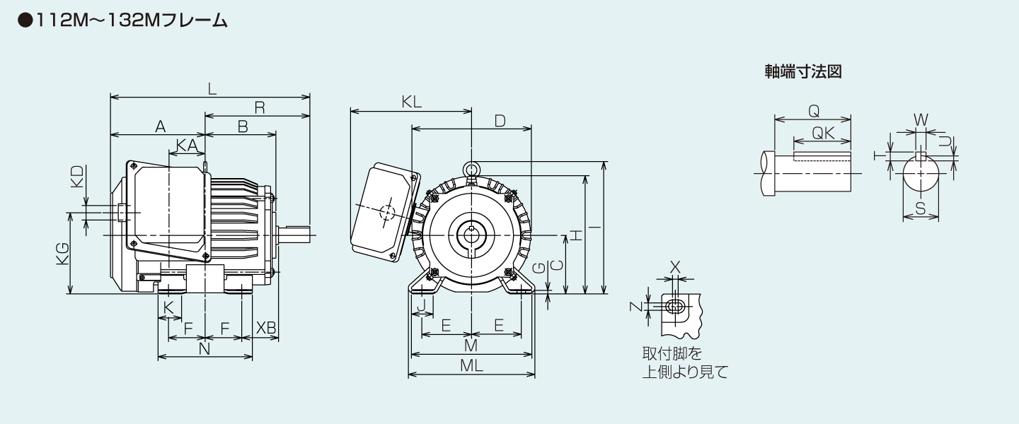 | ML | N | X | XB | Z | Q | QK | R | S | T | U | W | 負荷側 | 反負荷側 | |||