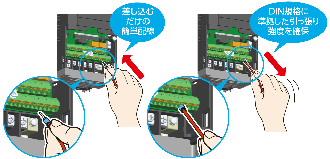 制御回路端子は、スプリングクランプ端子を採用しました。
