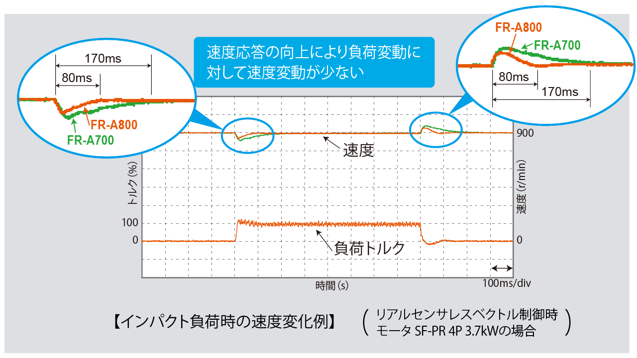 速度応答の向上により、負荷変動に対して速度の変動を最小に抑えて、一定速を維持します。