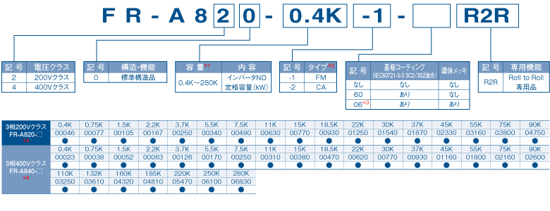 - *1インバータ定格電流(SLD定格)を表した形名も用意しています。