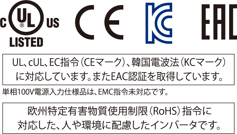 - *4単相200V、単相100V入力仕様品は出力が3相200Vとなります。