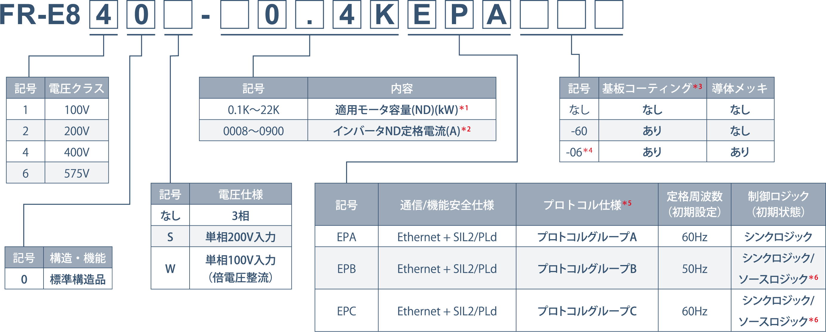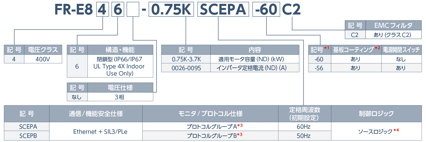 (制御ロジックは取扱説明書(接続編)、定格周波数は取扱説明書(機能編)を参照してください。)) - *2 -4-60、-4-06、-5-60、-5-06との組合せが可能