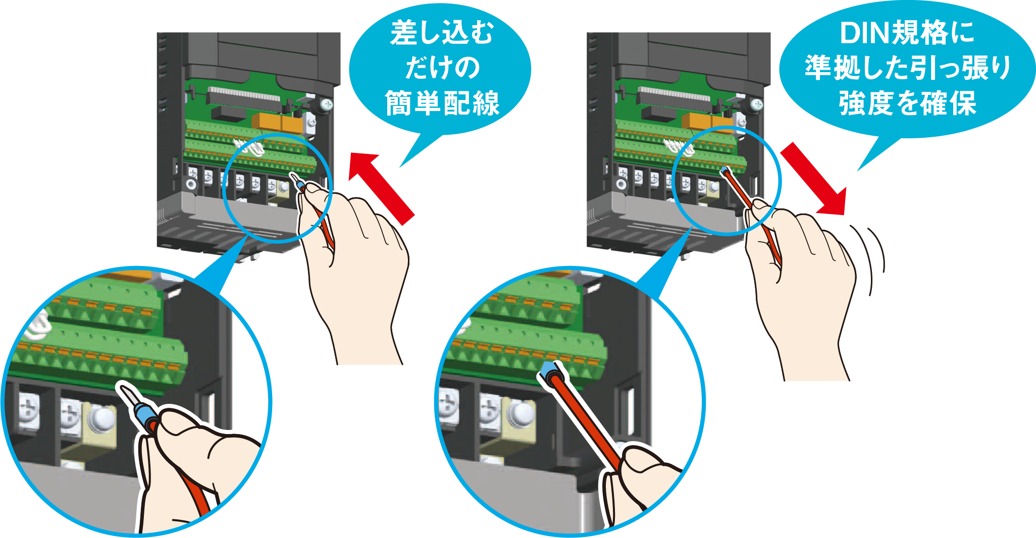 制御回路端子は、スプリングクランプ端子を採用しました。