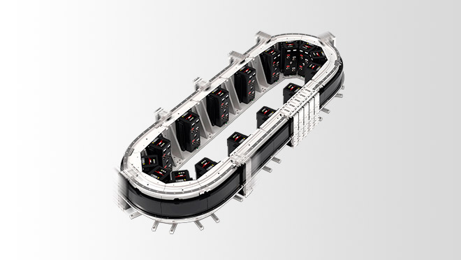 キャリアを個別に制御できるため、段取り替え作業が不要になり、1台の装置で変種変量生産が可能になります。