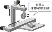 業界最高性能レベルのサーボアンプとサーボモータを使用した駆動システムを構築することで、装置のタクトタイム、稼働時間を短縮し、省エネ化を実現します。