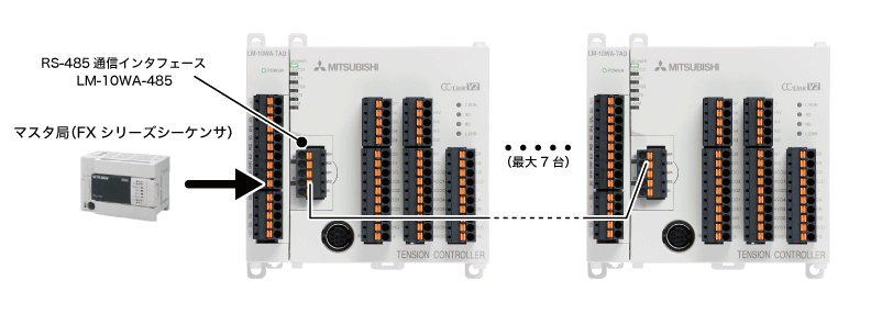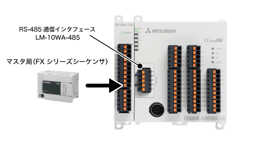 LE-10WTA-CCL/LD-10WTB-CCLやLM-10WA-CCLのメインユニットにLM-10WA-485を装着するとFXシリーズシーケンサの簡易PC間リンク通信のローカル局として動作します。