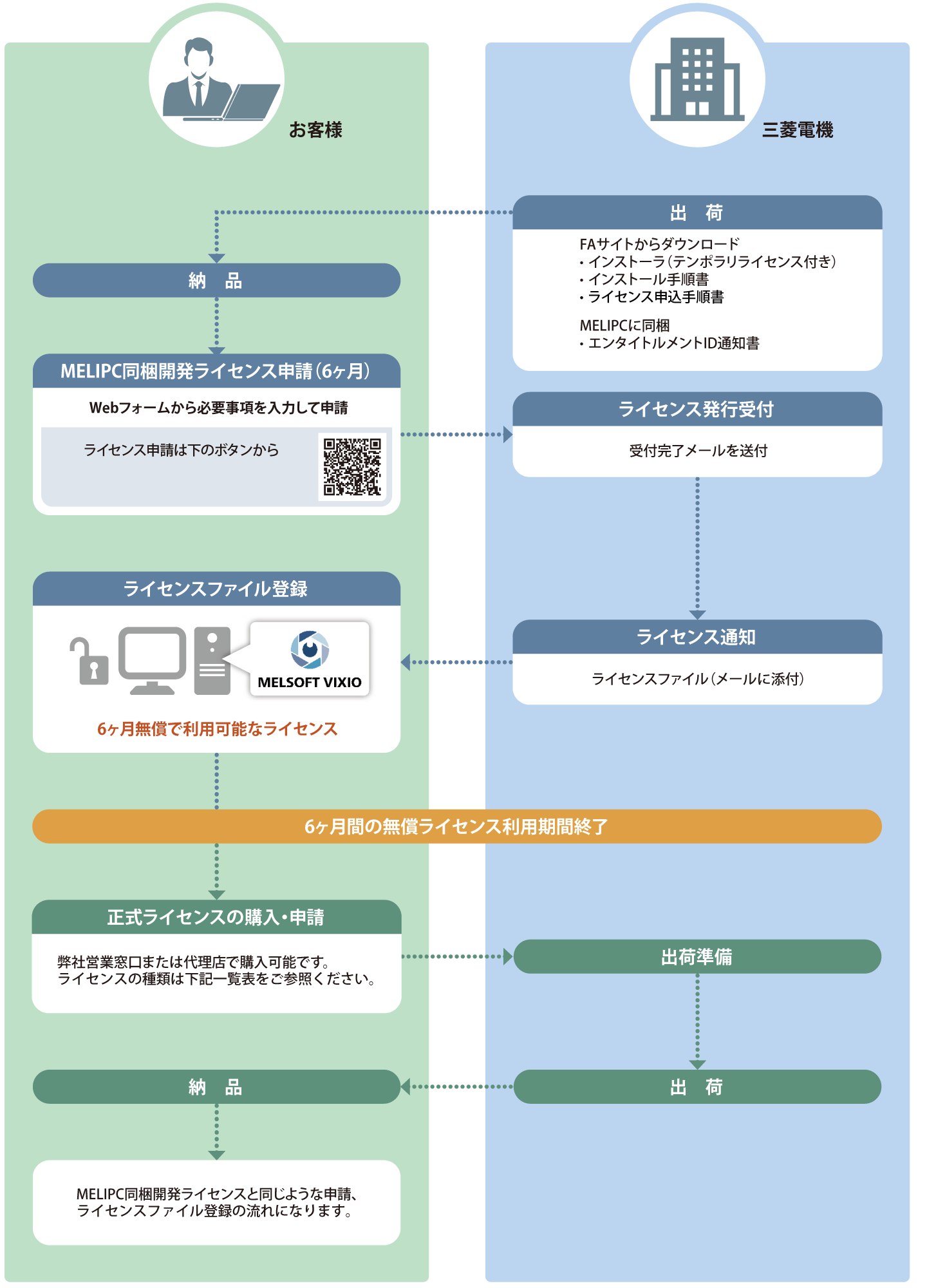 6ヶ月間無償で利用可能なライセンスと、正式ライセンス導入の流れをご紹介いたします。