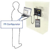 GOTとパソコンを接続し、GOTを経由して、FR Configurator での立ち上げ・調整作業ができます。盤を開けたり、ケーブルを付け替える手間がかかりません。
