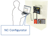 GOTとパソコンを接続し、GOTを経由して、NC Configuratorでパラメータ設定・調整作業ができます。盤を開けたり、ケーブルを付け替える手間がかかりません。