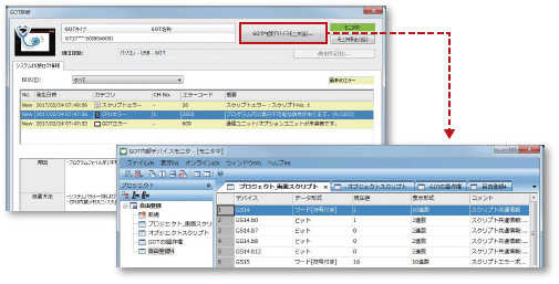 GOTのスクリプトプログラムのエラーと対処方法を確認できるため、効率的にプログラムの修正作業を行うことができ、装置立上げ時にも便利です。