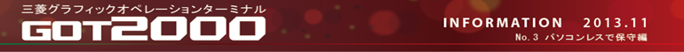 GOT INFORMATION No.3 パソコンレスで保守編 info_003 作成:2013年11月 容量:1.03MB (PDF) |