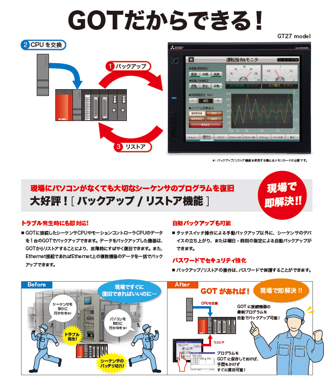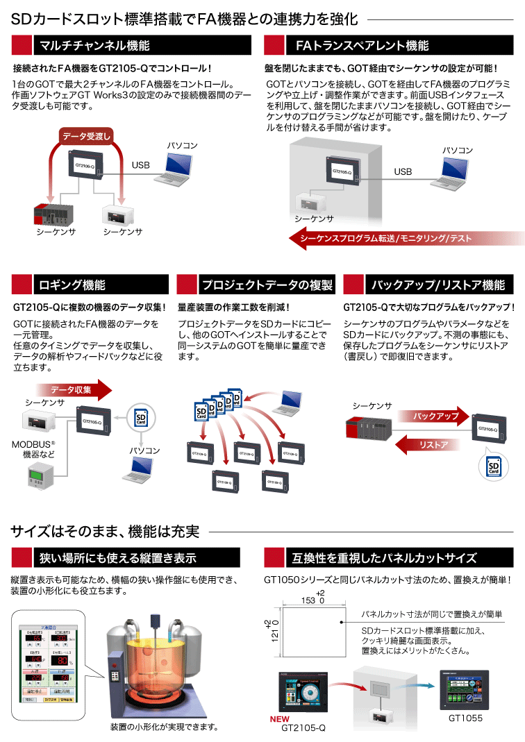 幅広くご愛用頂いているGOT1000の基本性能を研ぎ澄まし、さらなる高機能へ進化を遂げたGOT2000。 |