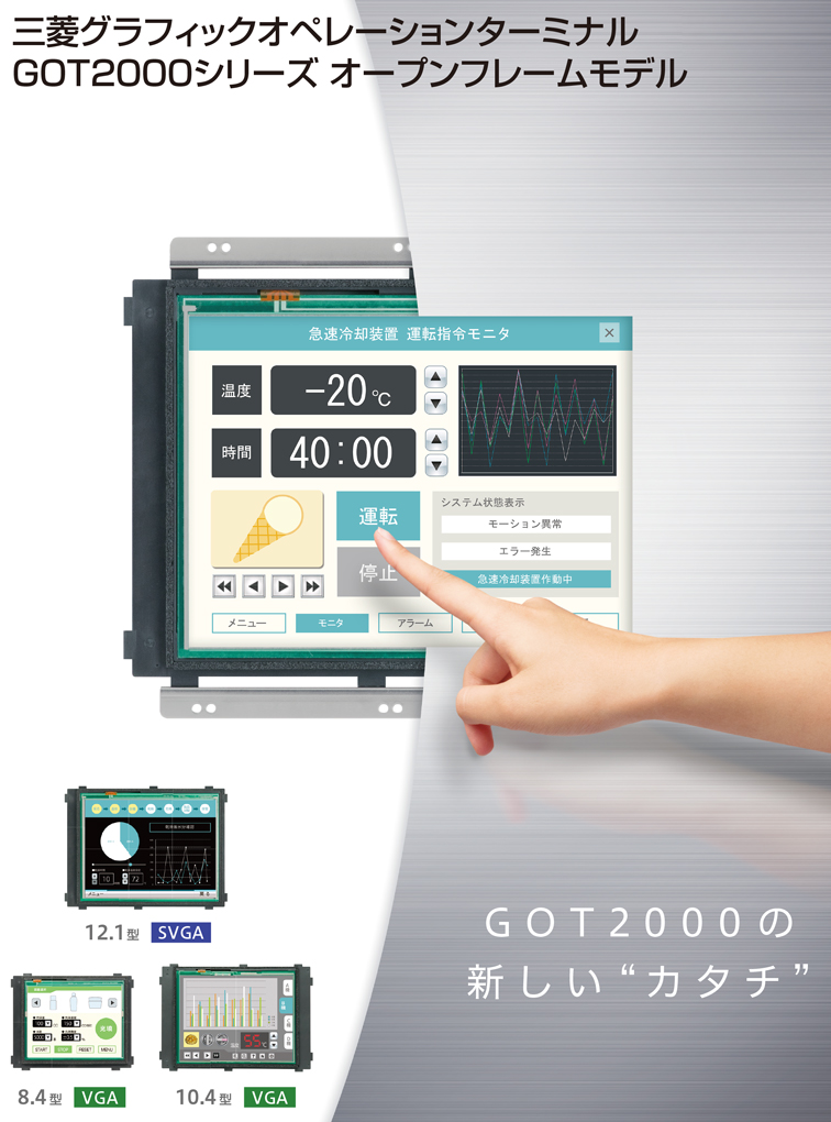 GOT2000シリーズ オープンフレームモデル <掲載内容> GOT2000の新しい“カタチ” 医薬品・食品の製造現場に役立つ、GOT2000オープンフレームモデル! |