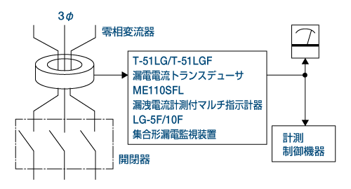 - 漏洩電流値の計測・制御機器と組み合わせます。