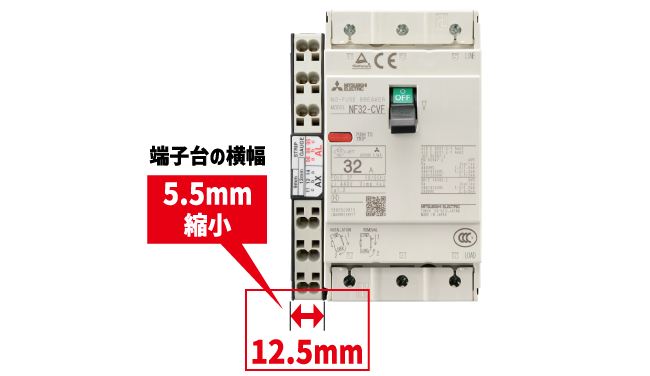 ねじ端子仕様と同様にカセットタイプのため、お客様にて遮断器に取付・取りはずしが可能(NF32-CVF, NV32-CVF, NF50-KC, NV50-KCを除く)