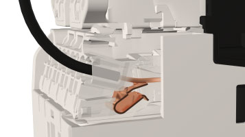 単線、フェルール端子は差し込むだけで接続が可能です。より線の場合でも、工具によりスプリングを開いて電線を挿入し、工具を抜くだけで接続が可能です。