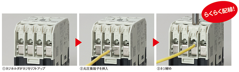端子カバー・配線合理化端子により配線性を向上(対象フレーム:T18~T50フレーム)