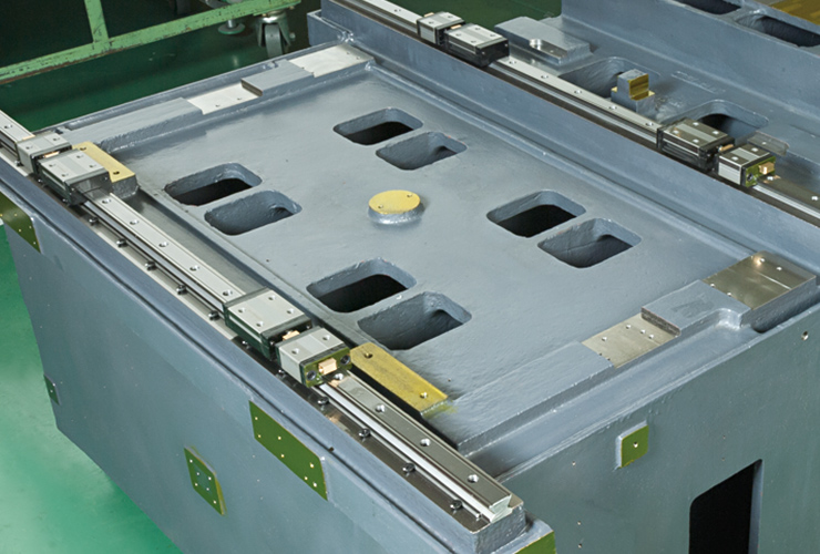 高精度リニアガイドによりウエービングを低減し、軸送り精度を向上。さらにリニアガイド取付面における機械加工精度向上により、真直精度1~2μmを実現しました。