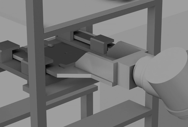 中子処理装置付き金型加工向けパッケージ【EDCHANGE Robo】。専用パレットにより金型プレートをロボットで搬送。