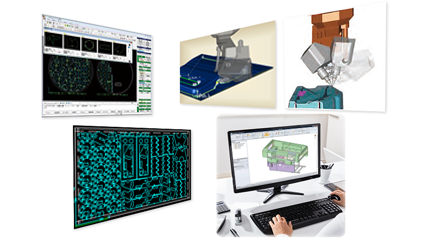 三菱電機二次元レーザ加工機向けCAD/CAM、三菱電機三次元レーザ加工機用CAD/CAM、生産支援システム等、さまざまなソフトウェアを組み合わせ、レーザ加工機を中心とした製造現場へのソリューションを提供。