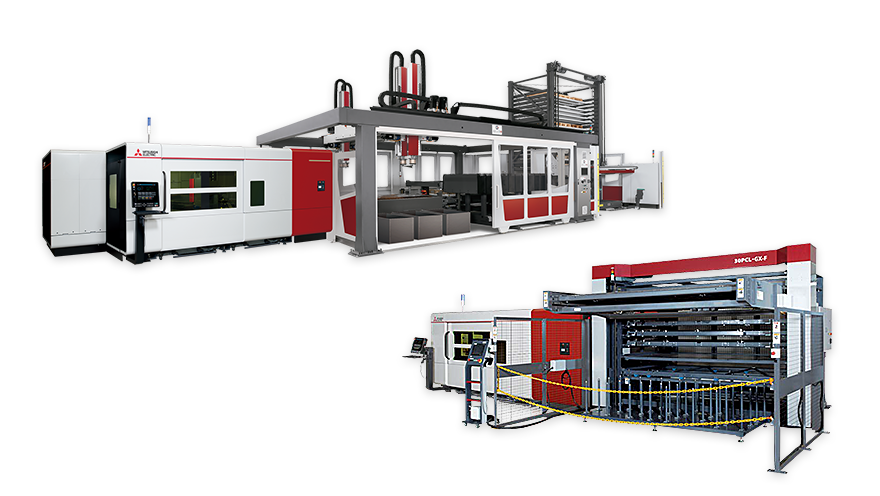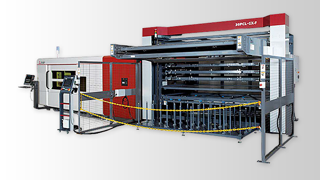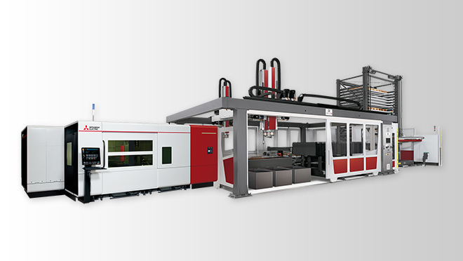 生産能力のアップや、きめ細かなニーズに対応した自動化システム。ファイバレーザ加工機にも対応。