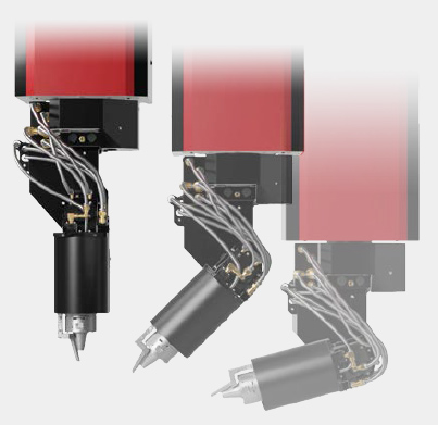立体形状のCFRP材を切断するため、レーザ光を1回照射するだけでワーク切断が可能なシングルパス加工ヘッドを開発。