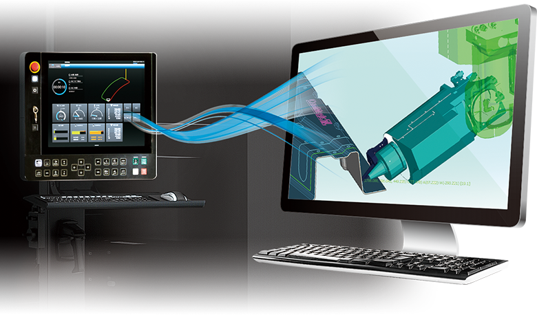 三菱電機純正のオフラインティーチング用のCAD/CAMソフトウェア。加工機側の「経路編集機能」との連携により、作業効率性が向上。
