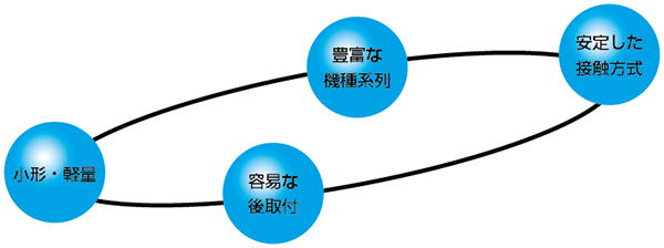 接続部は圧縮バネによる他力接触形で線接触方式を採用しています。