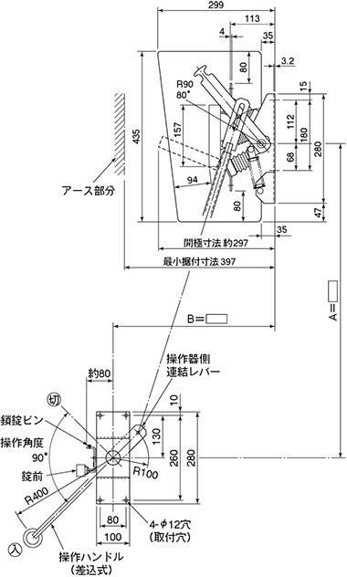 - 3.出荷時は、断路器本体、手動操作器共に右操作用に調整していますが、左操作用への調整変更が容易にできます。