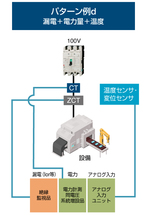 1回路の漏電計測+2回路の電力計測(三相3線式、低圧回路、定格一次電流50Aの場合)+アナログ入力(4点)+パルス入力(4点)