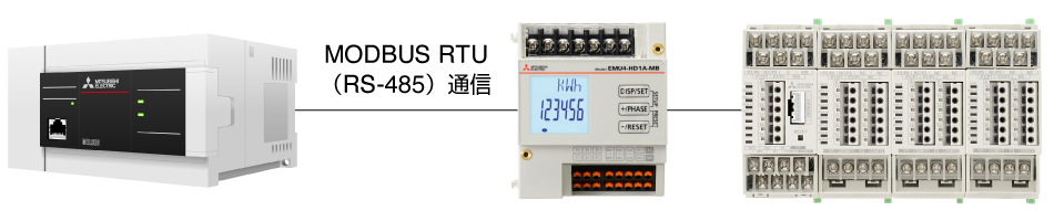 - エネルギー計測ユニットに標準搭載のMODBUS RTU通信を使用するため、オプションユニット不要で安価にシステム構築が可能