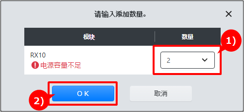 如果安装模块会引起电源容量不足,则会出现警告标记。