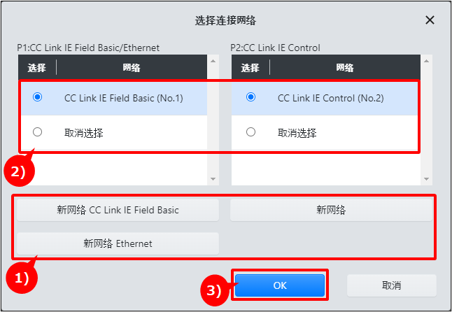 1)选择连接对象。根据选中的机型,显示此机型可连接的网络。