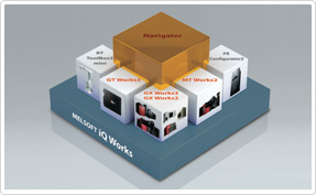 システム管理ソフトウェアMELSOFT Navigatorを核に各エンジニアリングソフトウェア(GX Works3/GX Works2、MT Works2、GT Works3、RT ToolBox2 mini、FR Configurator2)を統合した製品です。システム設計やプログラミングなどの設計情報を制御システム全体で共有することで、全体のプログラミング工数を減少させ、トータルコスト削減を図ります。