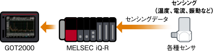 - シーケンサとGOTのみでデータ収集、可視化・分析、診断することが可能のため、必要な機器の入手性・保守性に優れ現場導入が容易。