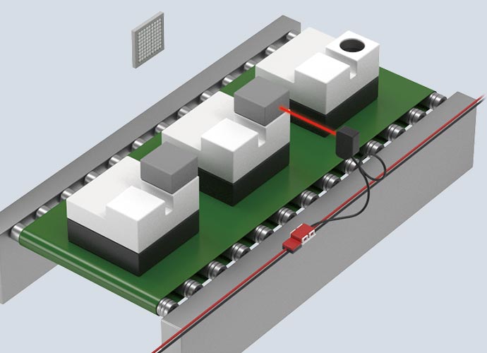 取付け部品有無の確認において、光軸をピンポイントで合わせられます。リモートI/O機能内蔵センサのため伝送ラインに直結でき、分岐配線も可能なため、点在するセンサを簡単に配線できます。振動による位置ズレや粉塵の堆積が発生しても、センシングレベル監視で予防保全が可能です。