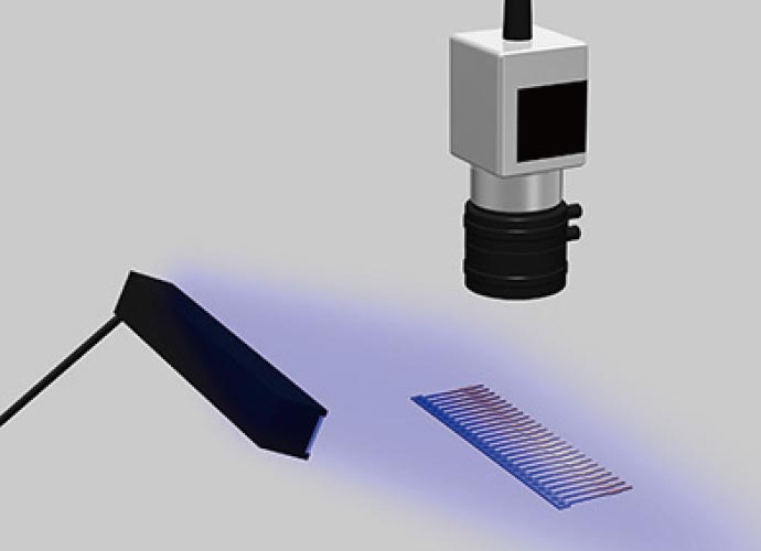 金のメッキが施されたリード部品の境界をカメラで検査します。