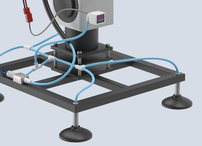 ワーク吸着時の圧力値を上位で監視し、吸着ミスの発生が無いか確認します。リモートI/O機能内蔵センサのため伝送ラインに直結でき、分岐配線も可能なため、ロボットハンド上で複数台使用しても配線が容易です。また、吸着パッドの劣化による空気漏れなどが発生しても、センシングレベル監視で予防保全が可能です。