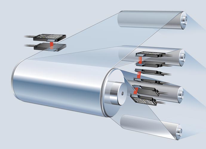 - 透過型デジタル変位センサHG-Tは、投光に10mmの帯状レーザを採用。受光にCMOS素子を採用した高精度位置計測を実現します(設置距離20mm時:繰返精度1µm、平均回数16回)