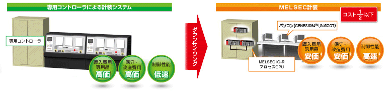 従来の専用コントローラに比べ約50%の初期投資額低減を実現しています。ランニングコストも大幅に低減可能です。