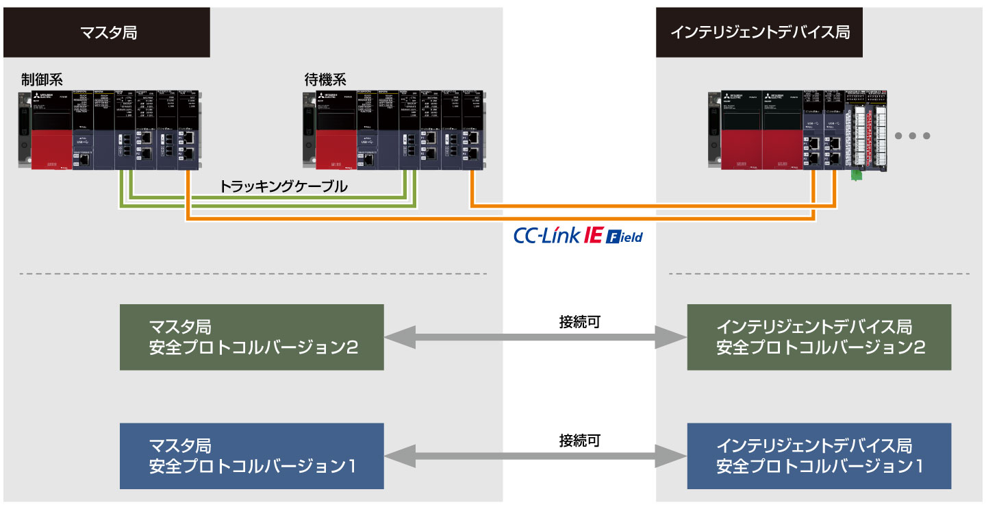 マスタ局とインテリジェントデバイス局の安全プロトコルバージョンが同じ場合、接続可能です。