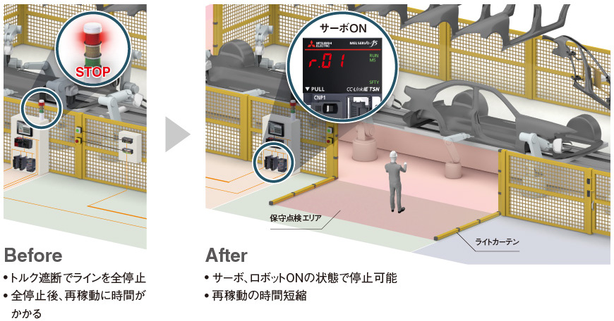 安全停止(SS2)、安全停止保持(SOS)でスムーズな再稼動を実現