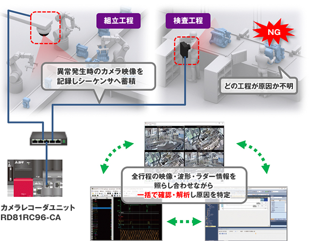 - 全工程の映像・波形・ラダー情報を照らし合わせながら一括で確認・解析し原因を特定