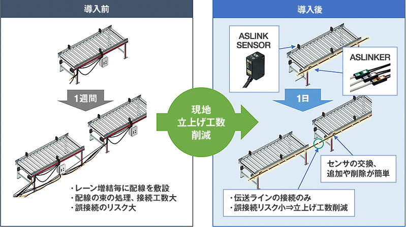 煩雑になるセンサ線接続と配線束を解消、ライン立上げ・拡張を容易に