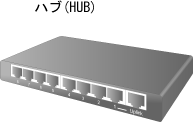 Ethernetで使用する集線装置です。ネットワーク機器はネットワークケーブルとハブを介して相互に通信します。