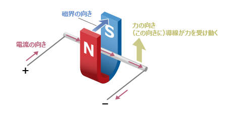 磁界のあるところに電流を流すと、電流が流れるコイルには目には見えない力が働きます。