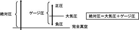 大気圧より大きい圧力を正圧、小さい圧力を負圧という。