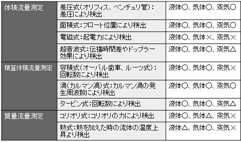 流量計の代表的な種類を以下に示す。